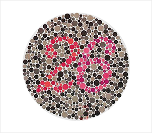 | 红绿色盲者中的红色盲者能读出6,而绿色盲者能读出2, 但红绿色弱者及正常者则两个字都能读出来。 |